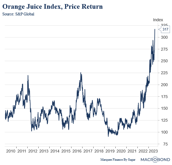 It’s not only crude; the whole commodity basket saw a one-way move up. Some commodities like “Orange Juice” and Cocoa have skyrocketed.