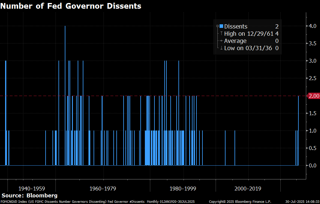 However, for the first time since the 1990s, we had dissidents yesterday with two Governors (Waller and Bowman) voting for a cut against the majority.