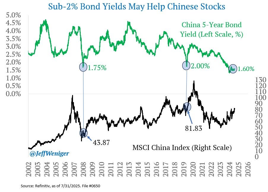 In the opposite scenario of the US, the equity risk premium is relatively attractive in China.