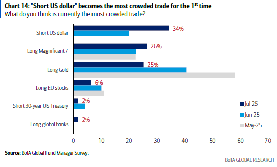 Until the middle of the month (July), DXY was having one of its worst years since the 1970s, and the positioning was skewed with Short US dollar, the most crowded trade. For the first time in the BofA Fund Manager’s survey's history, “Short US Dollar” was the most crowded trade.
