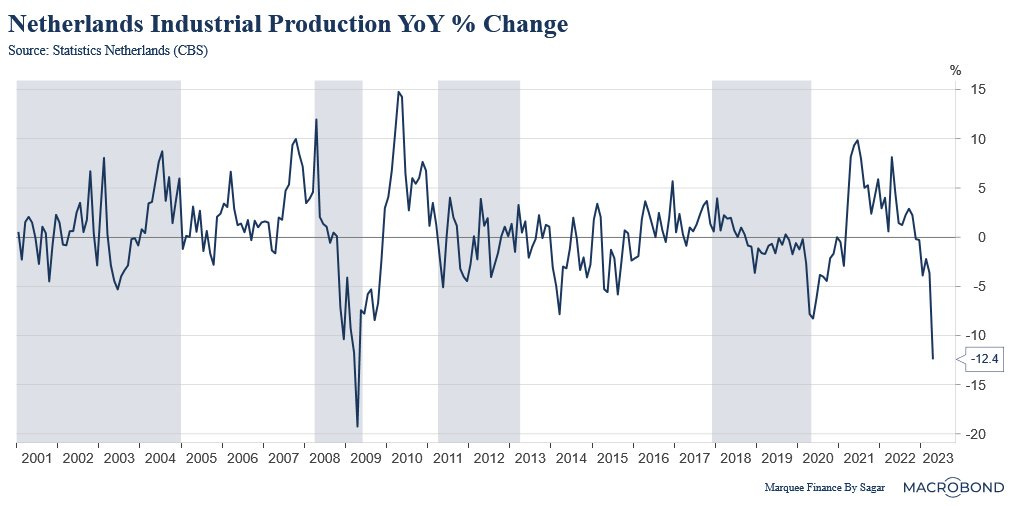 Europe's Macro continues to weaken as Industrial Production weakens across the board. The Netherlands IP was a shocker.