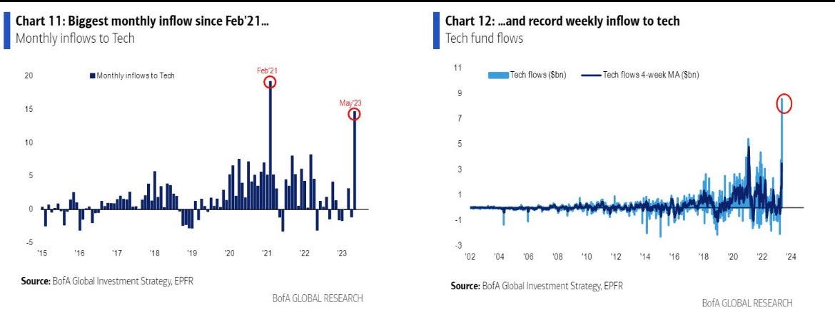 As the equities rally gathered steam, the institutional investors got a FOMO and began to pump money into tech funds in early June.