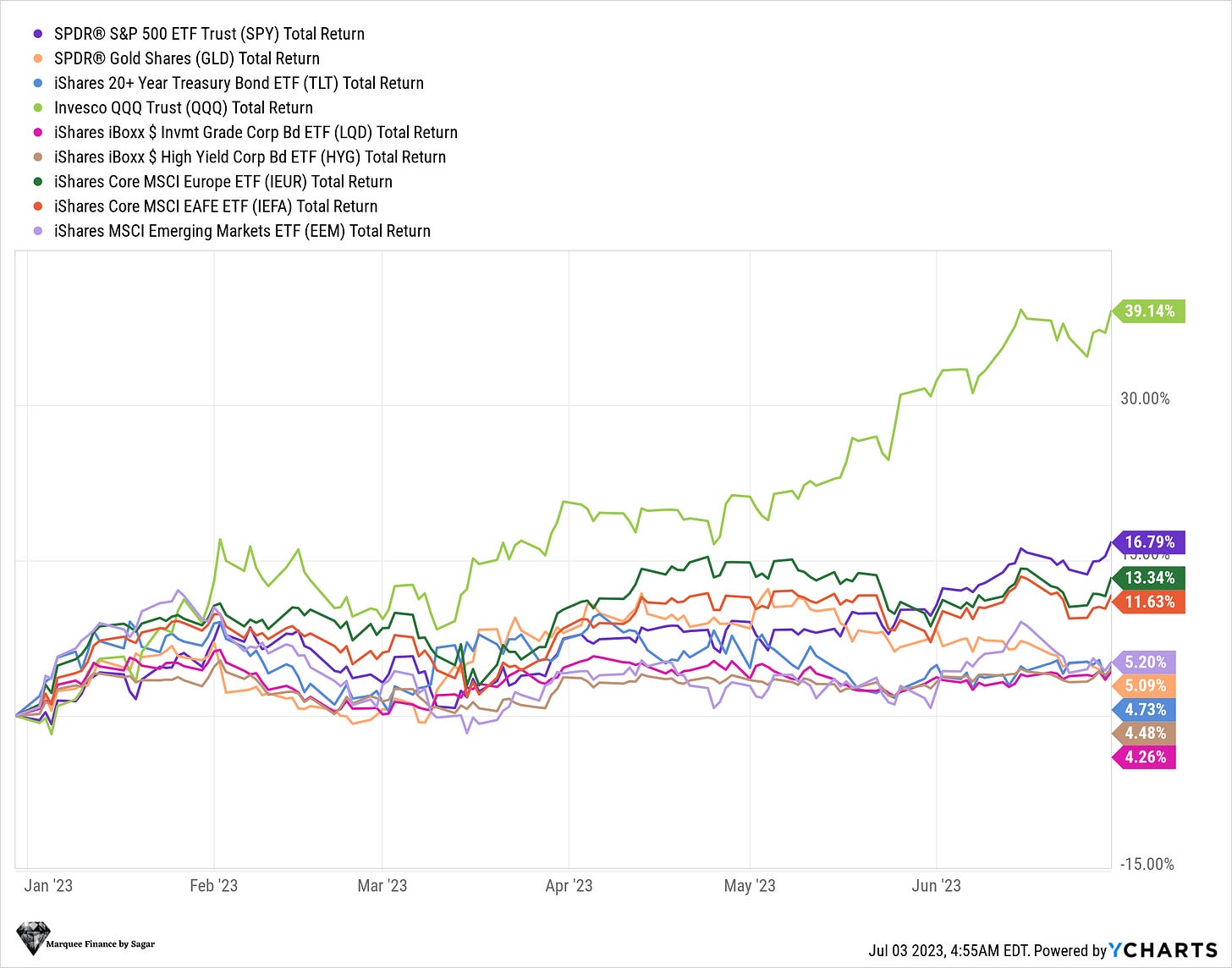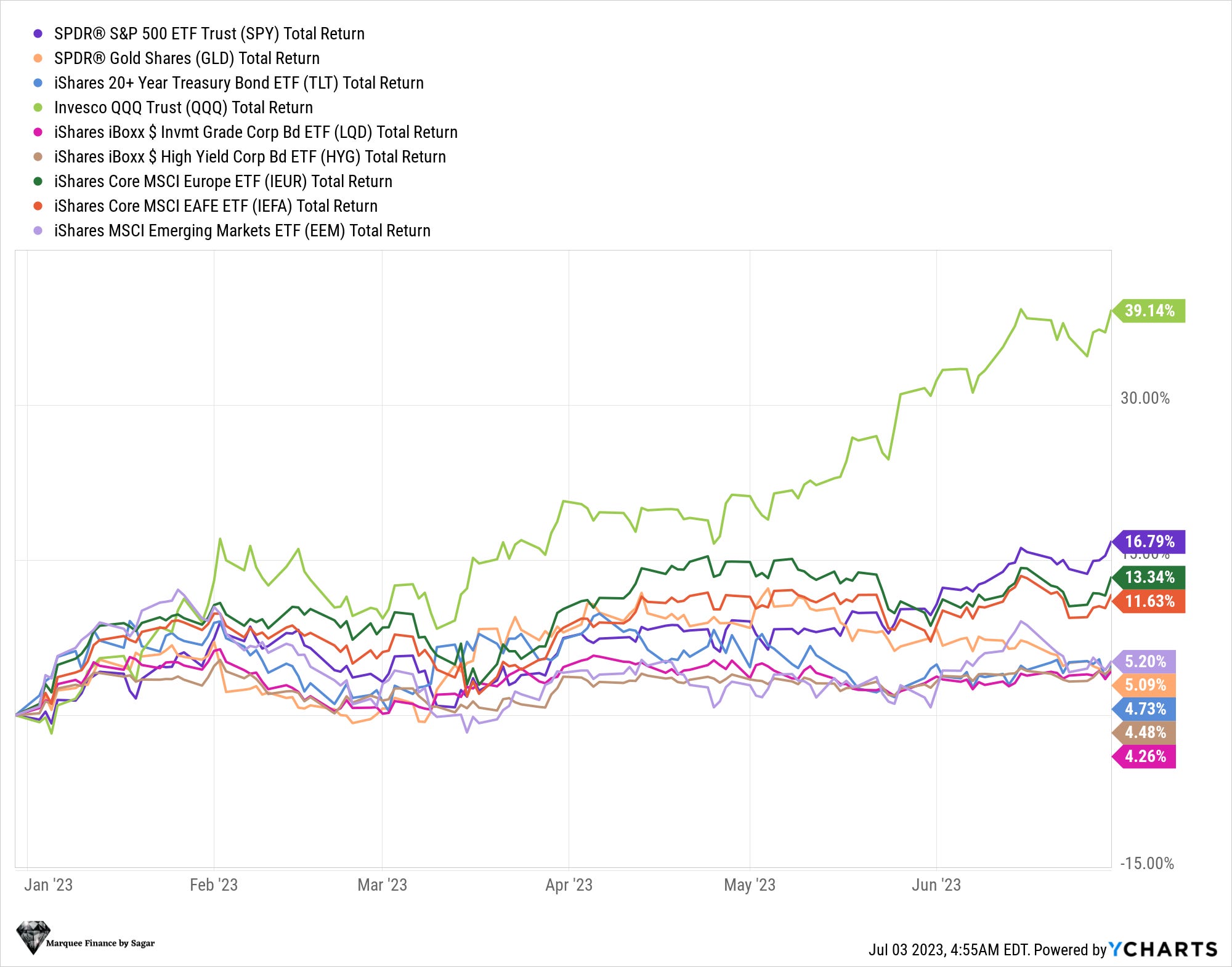 QQQ was the biggest gainer in equities with an astounding 40% return!