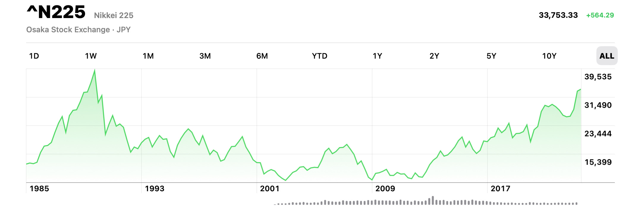Japanese stocks continued their dream bull run as the benchmark index touched fresh 33-year highs while USDJPY reached dangerous levels of 145.