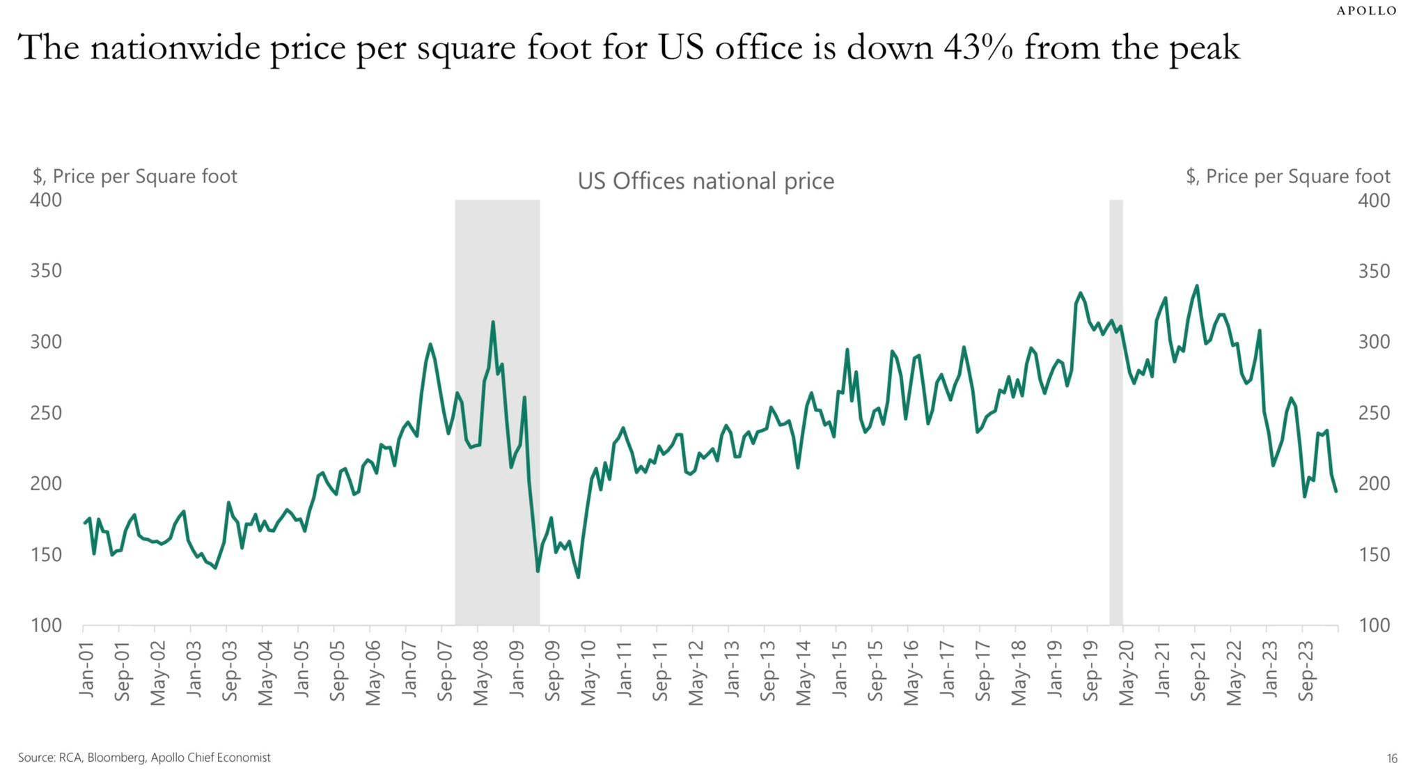 The nationwide price per sqft for the US office is now down 43% from the peak, with vacancy rates at multi-decadal highs.