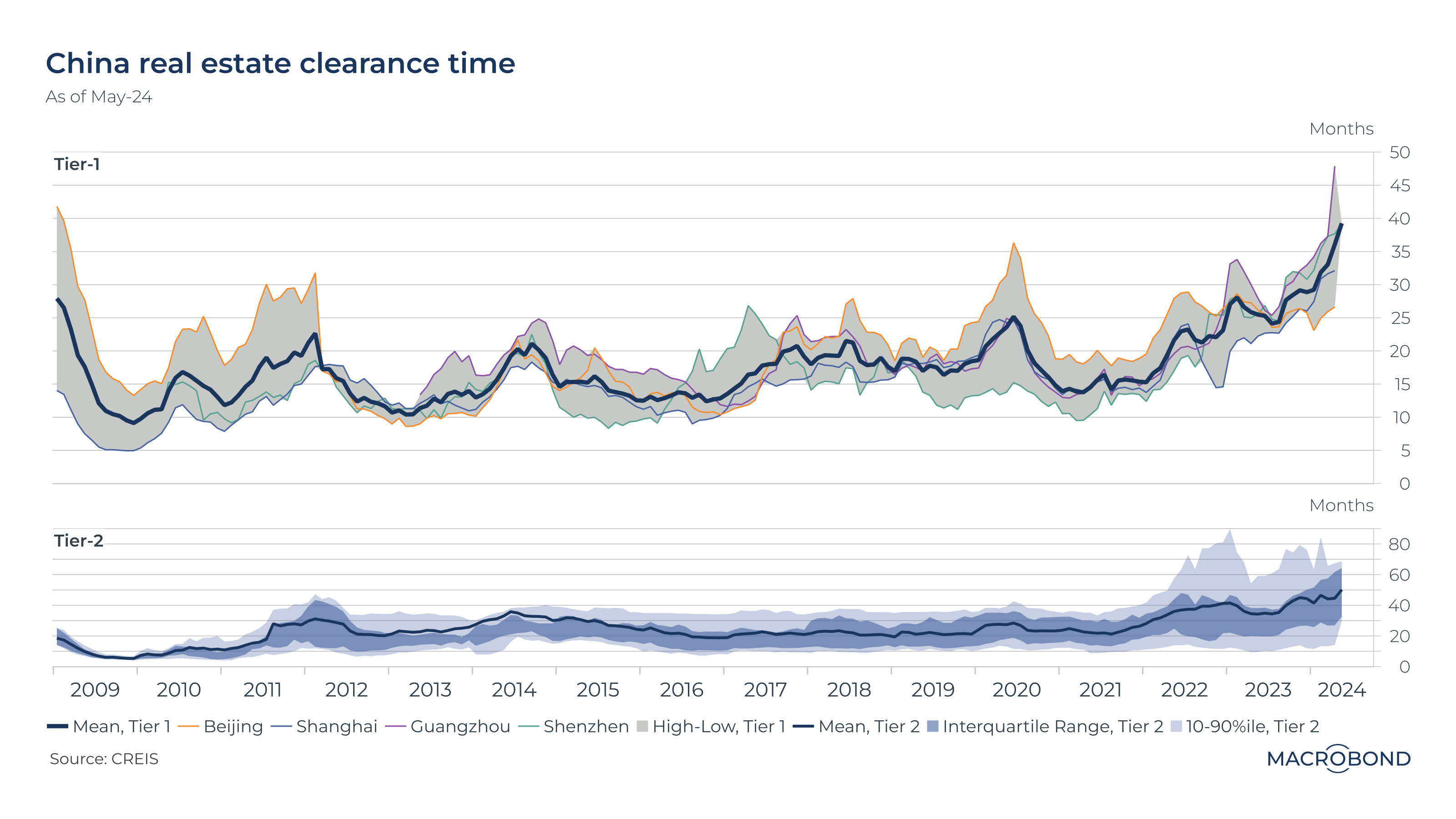 The RE clearance time in Tier 1 cities has reached the highest levels as demand remains subdued and prices are in free fall.