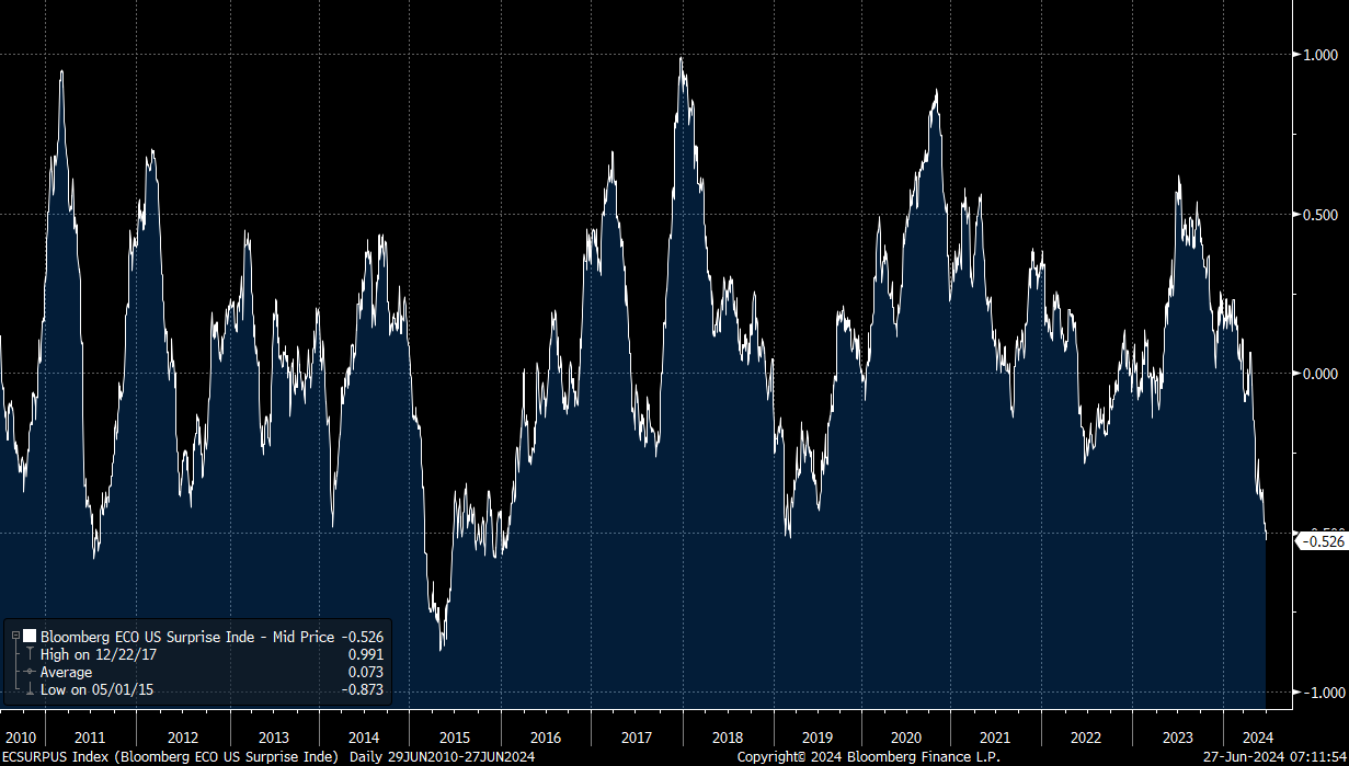 Beginning in May, we saw a deterioration in US growth. While some market participants termed it transitory, the streak of “negative” growth surprises continued in June.