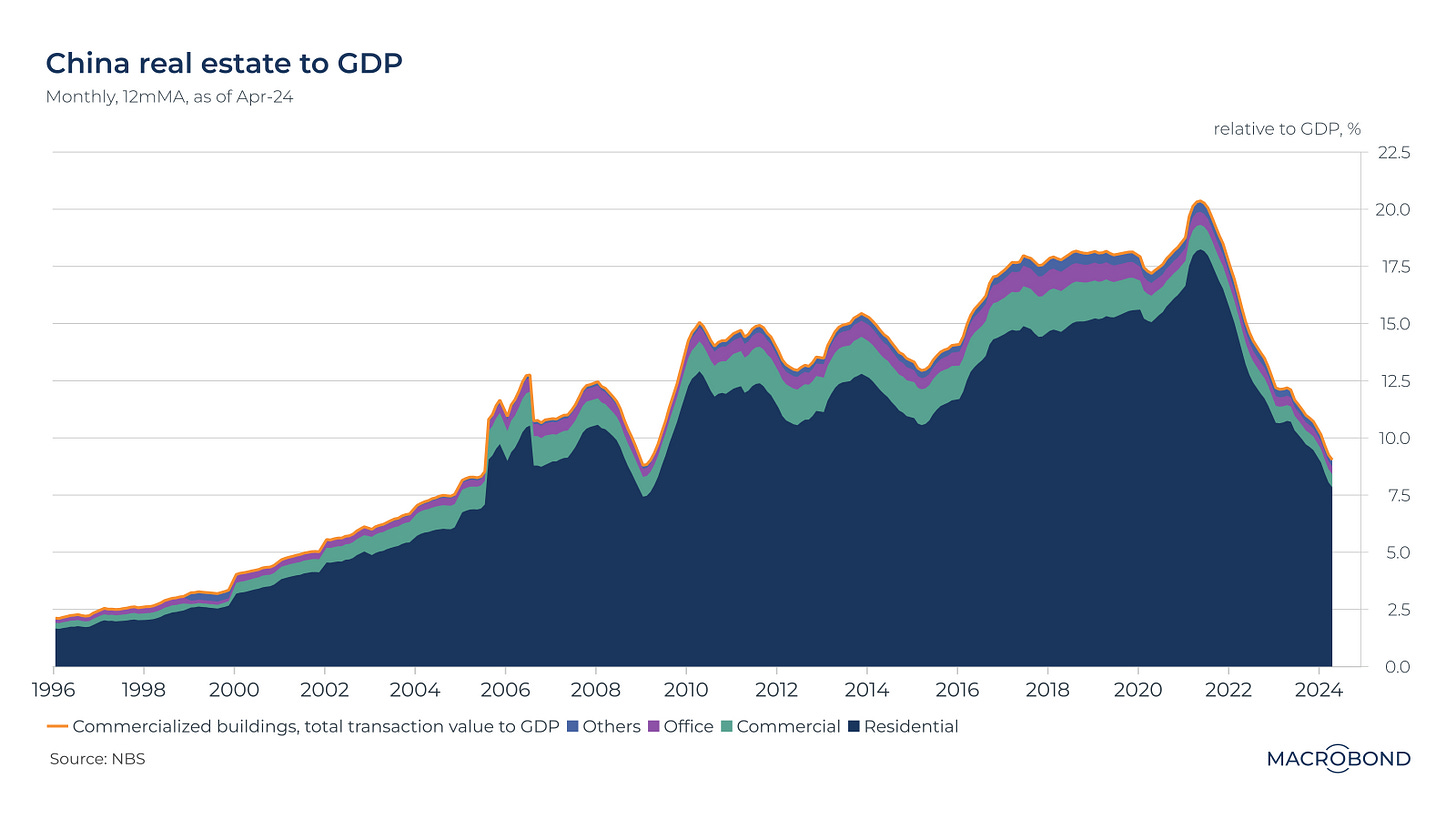 The good news is that the Chinese RE-to-GDP ratio has moved sharply lower as prices fall and speculative demand crashes.In the long term, this is a healthy sign for the Chinese economy.