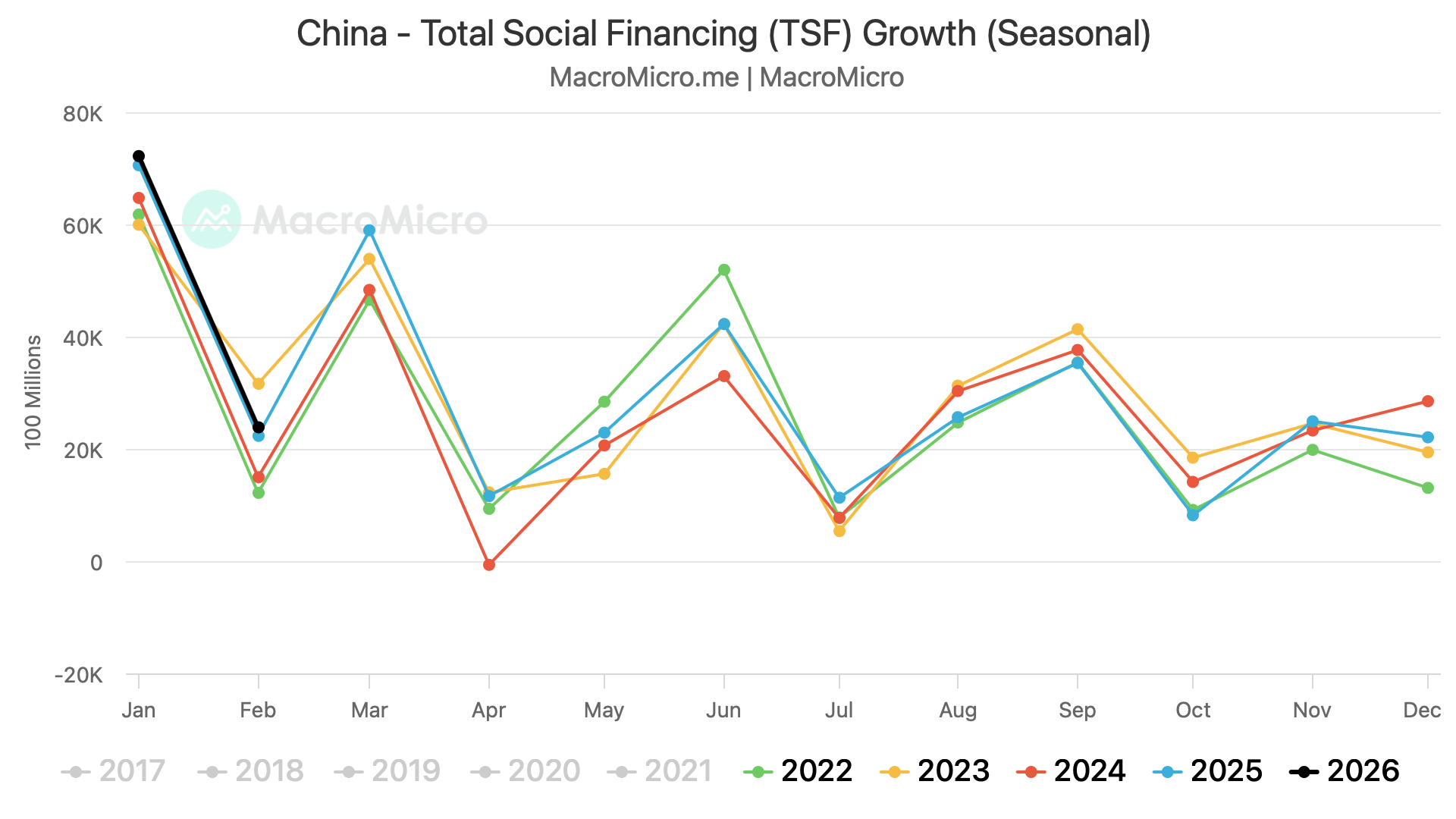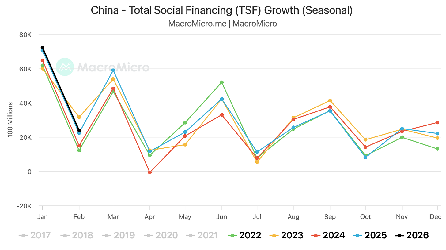 PS: Total social financing growth typically shows seasonal increases at quarter-end.