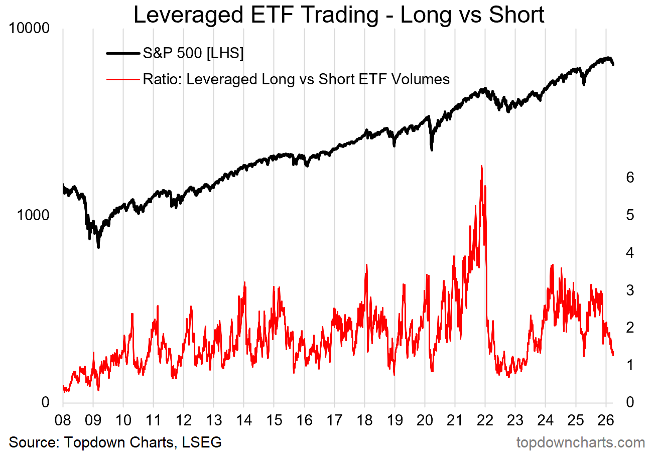 The Leveraged Long/Short ETF Volumes indicator helps predict bottoms. However, during the 2022 bear market, the indicator slumped and stayed low.