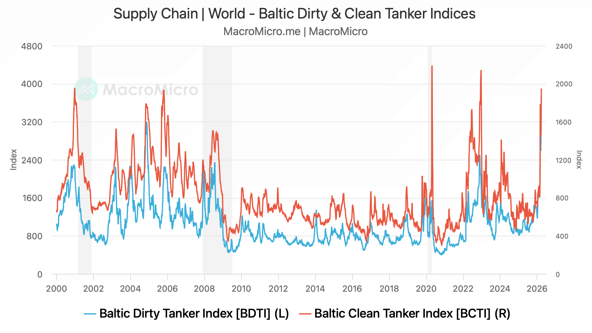 The Baltic Dirty and Clean Tanker indices are now approaching record highs. Also note that the insurance premiums have also seen insane increases, leading to elevated freight costs.