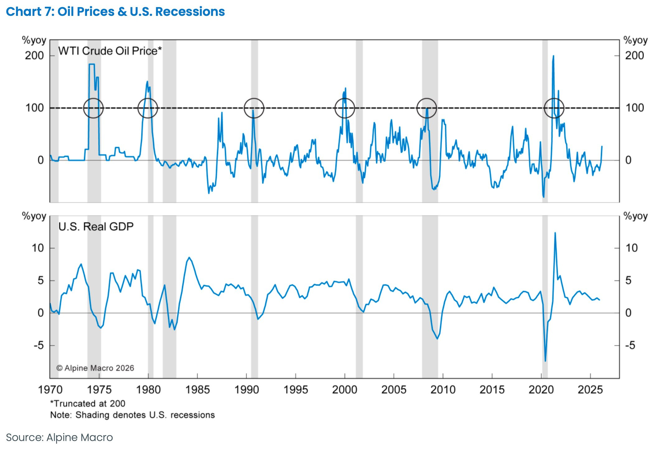 The oil spike during the 2022 Russia–Ukraine conflict did not trigger a recession due to the fiscal impulse and pandemic savings; however, as you remember, economists also called for a recession in 2022.