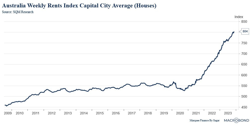The Weekly Rents across Australia doubled in the last three years, a significant gain compared to the post-GFC period, where the rents didn’t move for a long 10 years.