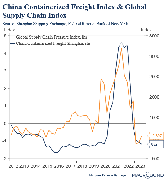 Goods disinflation has been a global trend led by the Chinese reopening (massive fall in the Shanghai Freight prices).