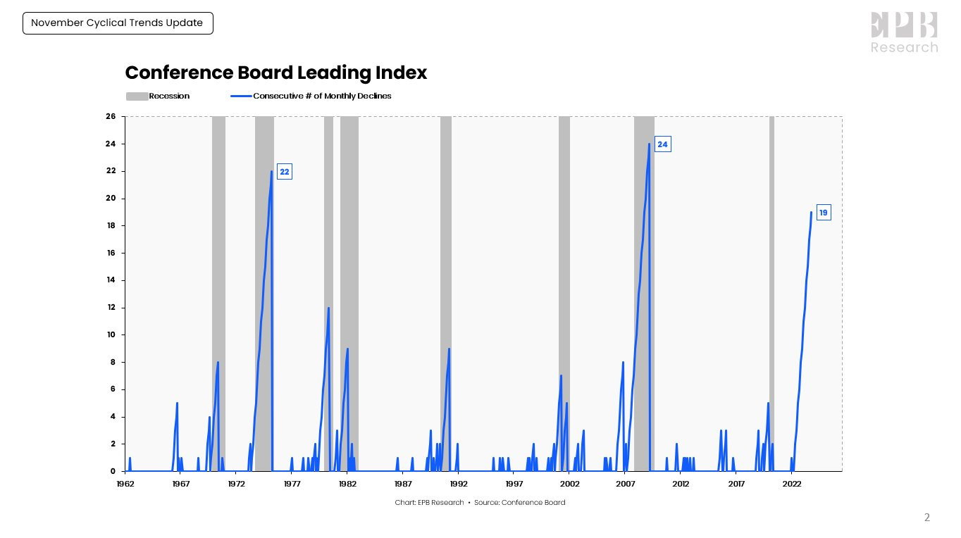 The Conference Board Leading Index is a confluence of various leading indicators with an impeccable track record of predicting a recession.