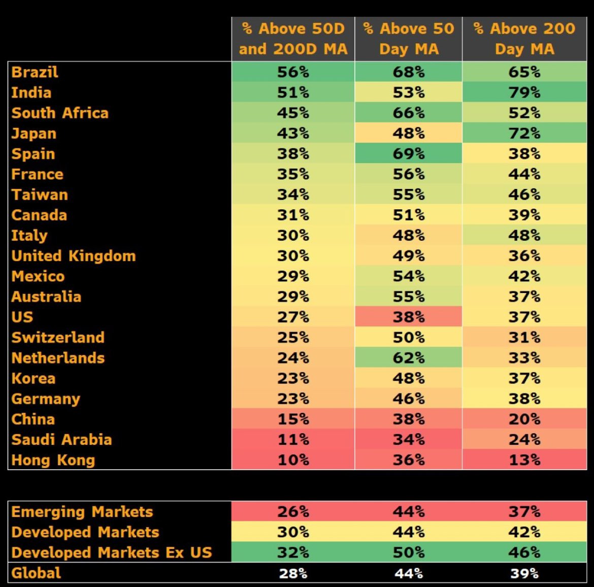 The “strongest” equity markets (technicals) are not in the concentrated US Tech heavy NDX but in Brazil, South Africa and India.