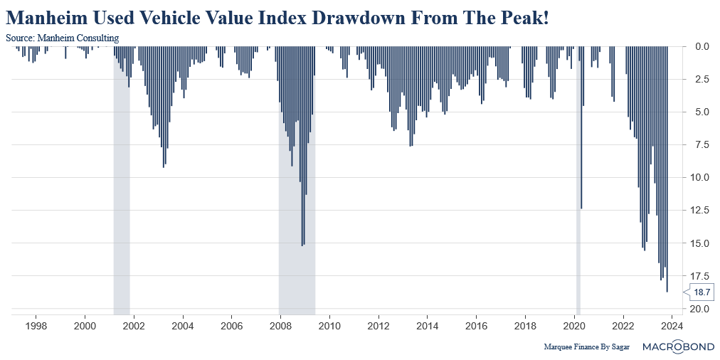 The Used Vehicle Index is now witnessing the biggest drawdown in the last two decades as the bubble post-COVID has finally burst. The DQ rates are indeed going up across auto loans.