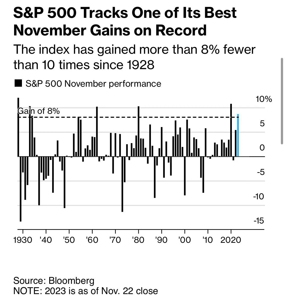 In a stealth rally which stole the show for November, S&P 500 witnessed an 8% gain, one of the best in the last 100 years.