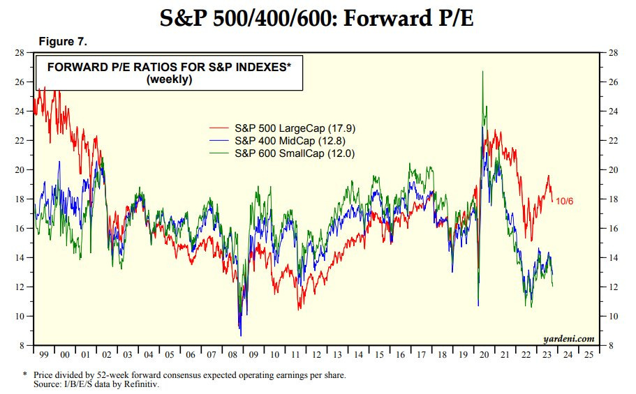 While the forward PE multiple for the S&P 500 is still higher than 15X (long-term average), small caps are signalling more pain ahead as multiples contract to extremely low levels.