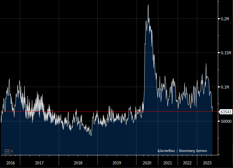 As a result, global crude oil in floating storage has declined to a near 4-year low of around 63.5 million—one more sign of a tight physical market.
