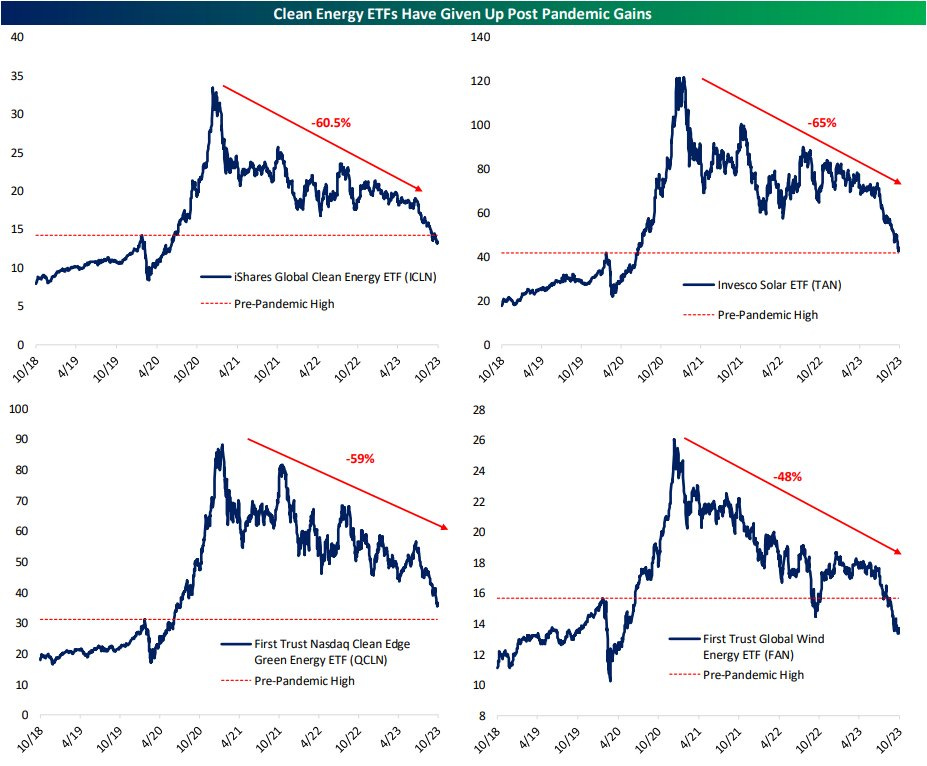 Touted as the next big bull market leader with trillions of dollars of potential, the clean energy sector has burnt investors' fingers. The bubble in clean energy has burst, and the stocks/ETFs are below the pre-COVID levels with the drawdown of more than 60%.