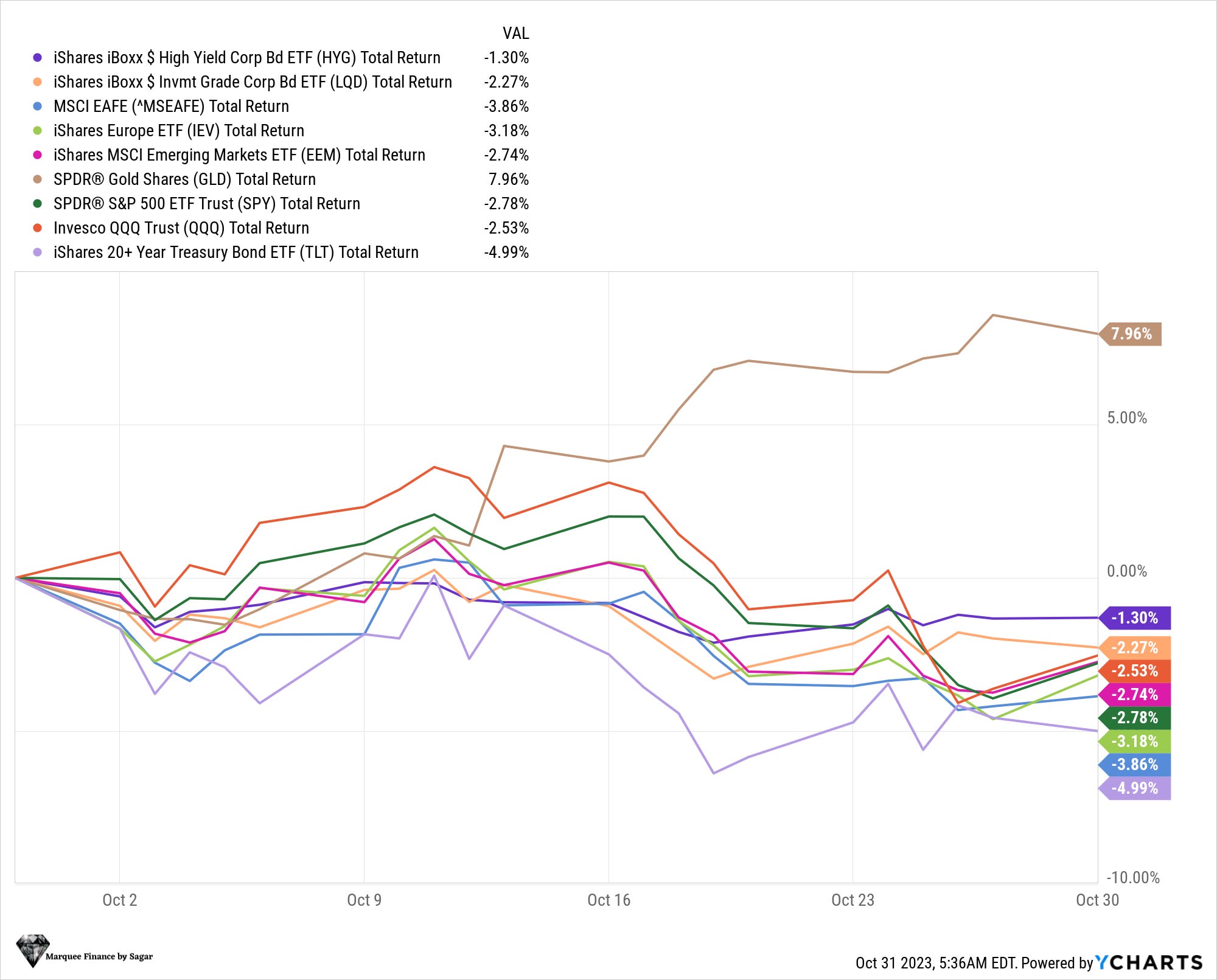No doubt that considering geopolitical conflict and the mounting debt concerns in the US, the best performers in October were Gold and BTC.