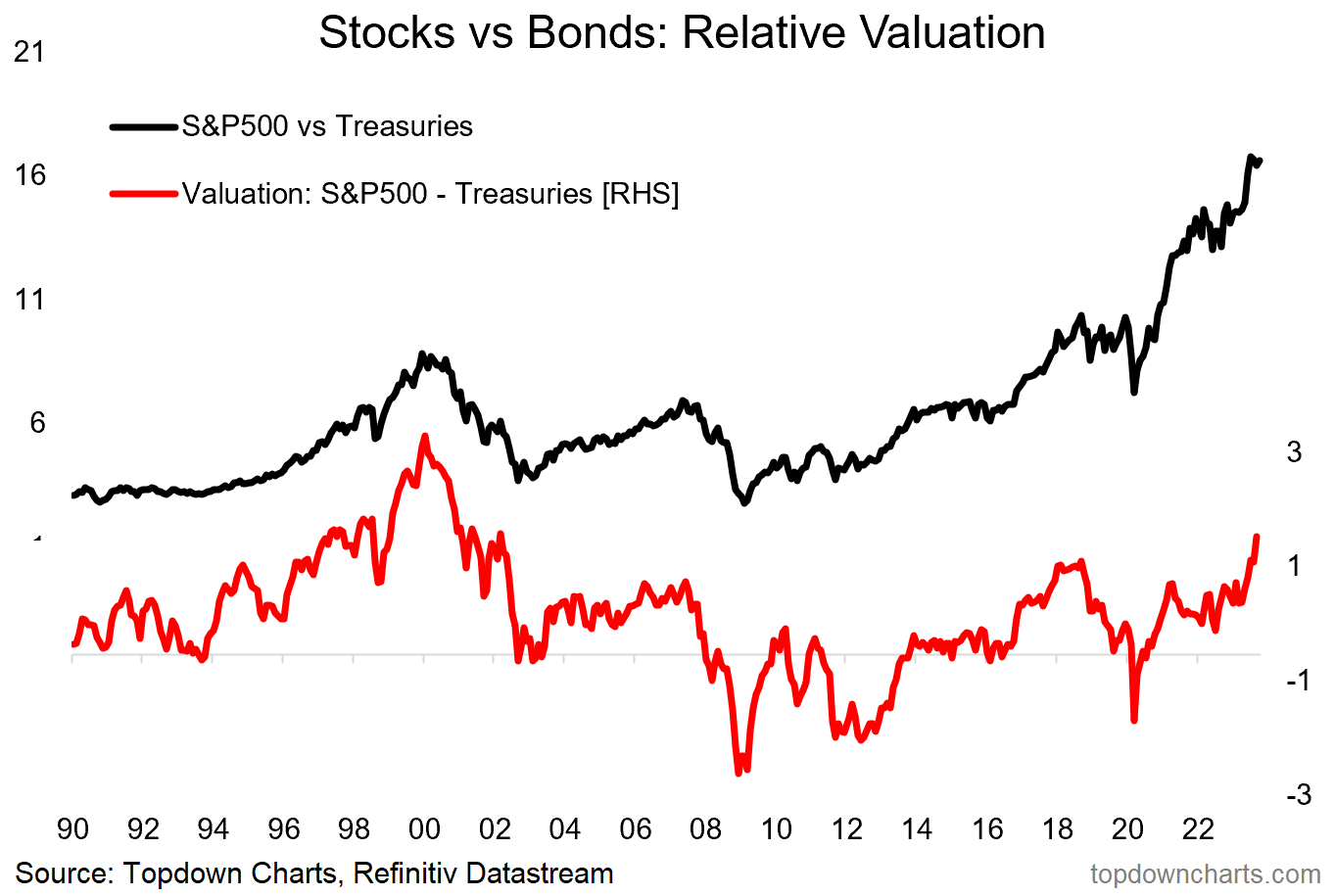 The relative valuation indicates that holding bonds over stocks will benefit investors at the current juncture.