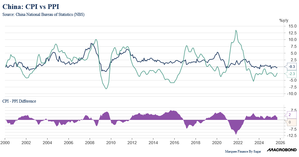 The deflationary bust in China continues unabated, as the PPI has been in negative territory for the last three years, and the CPI has been languishing at 0%.