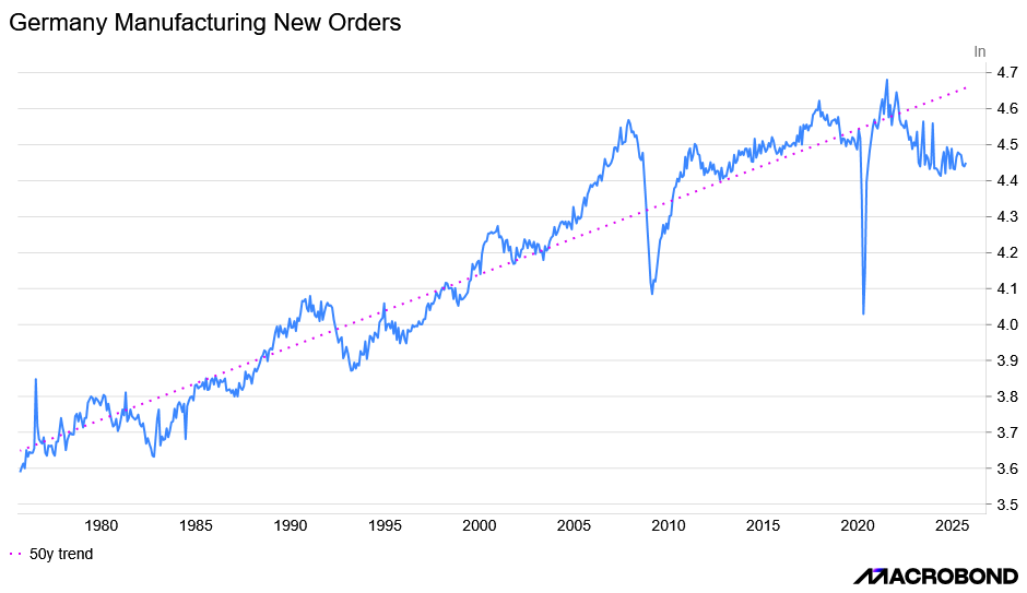 Europe’s manufacturing powerhouse has been in a secular decline, as evident in the Manufacturing New Orders.