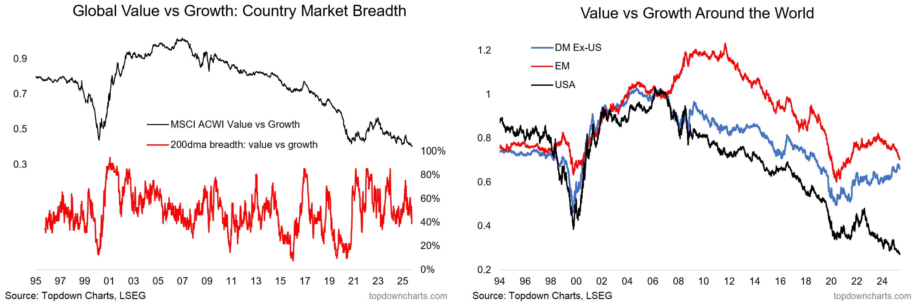 In the US, due to the Mag 7 explosive growth, the Growth has outperformed value stocks by the widest margin on record.