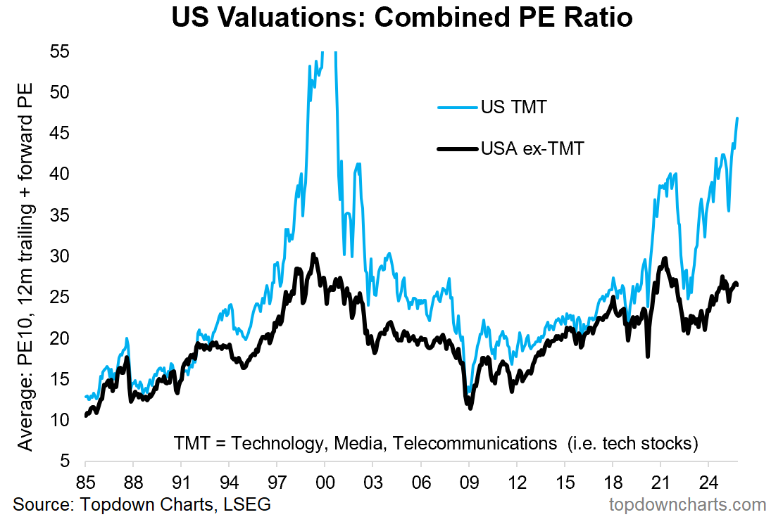 When we closely examine the valuations, tech valuations have surpassed the 2021 peak but remain below the levels of the dot-com era. On the contrary, the rest of the markets are fairly valued. Note that, due to the K-shaped economy, the earnings of select companies, especially those in consumer staples, have been disappointing.