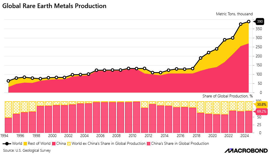Unsurprisingly, China has a lion’s share of the Rare Earth Global production.