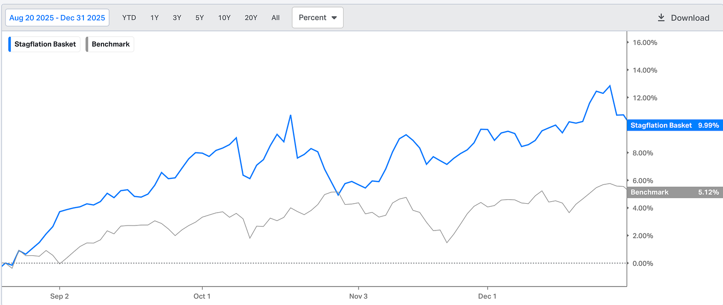 We formed a stagflation basket at that time, which is up 10% since inception compared to 5% for the benchmark.