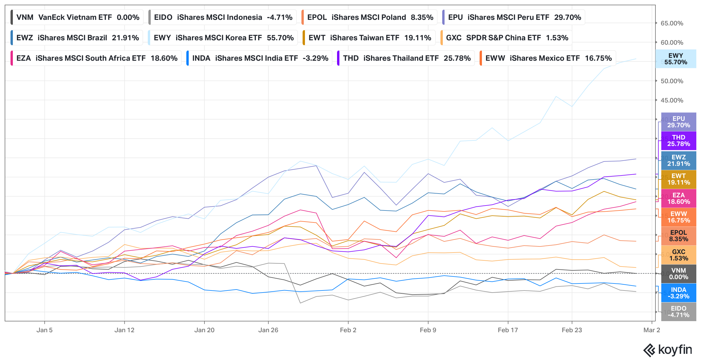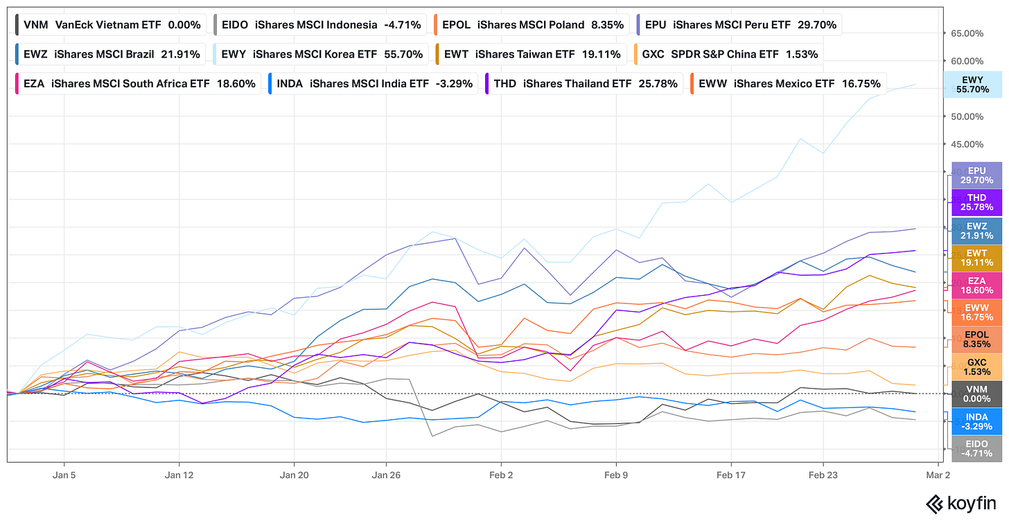When we dig deeper, the outperformance was led by only 3 stocks as the flagship EEM ETF saw massive gains due to South Korea (Samsung and SK Hynix) and Taiwan (TSMC).
