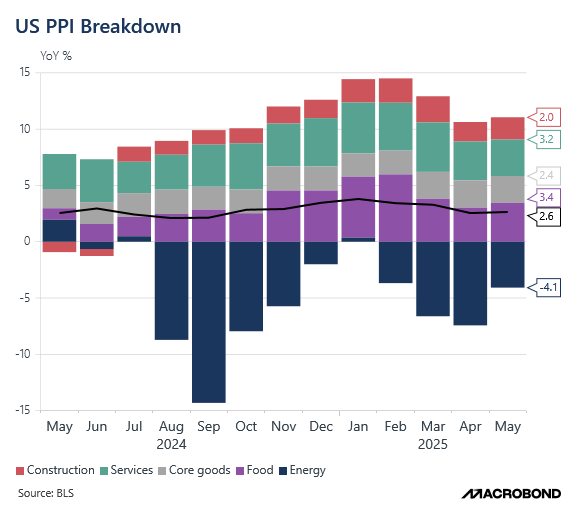 Let’s begin with the Producer Price Index (PPI), which came in softer than expected at 0.1% MoM versus the expected 0.2%.