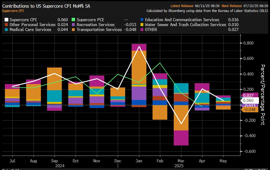 The sticky Supercore CPI (Services Ex-Housing) also cooled down significantly, with transportation services dragging the index lower.