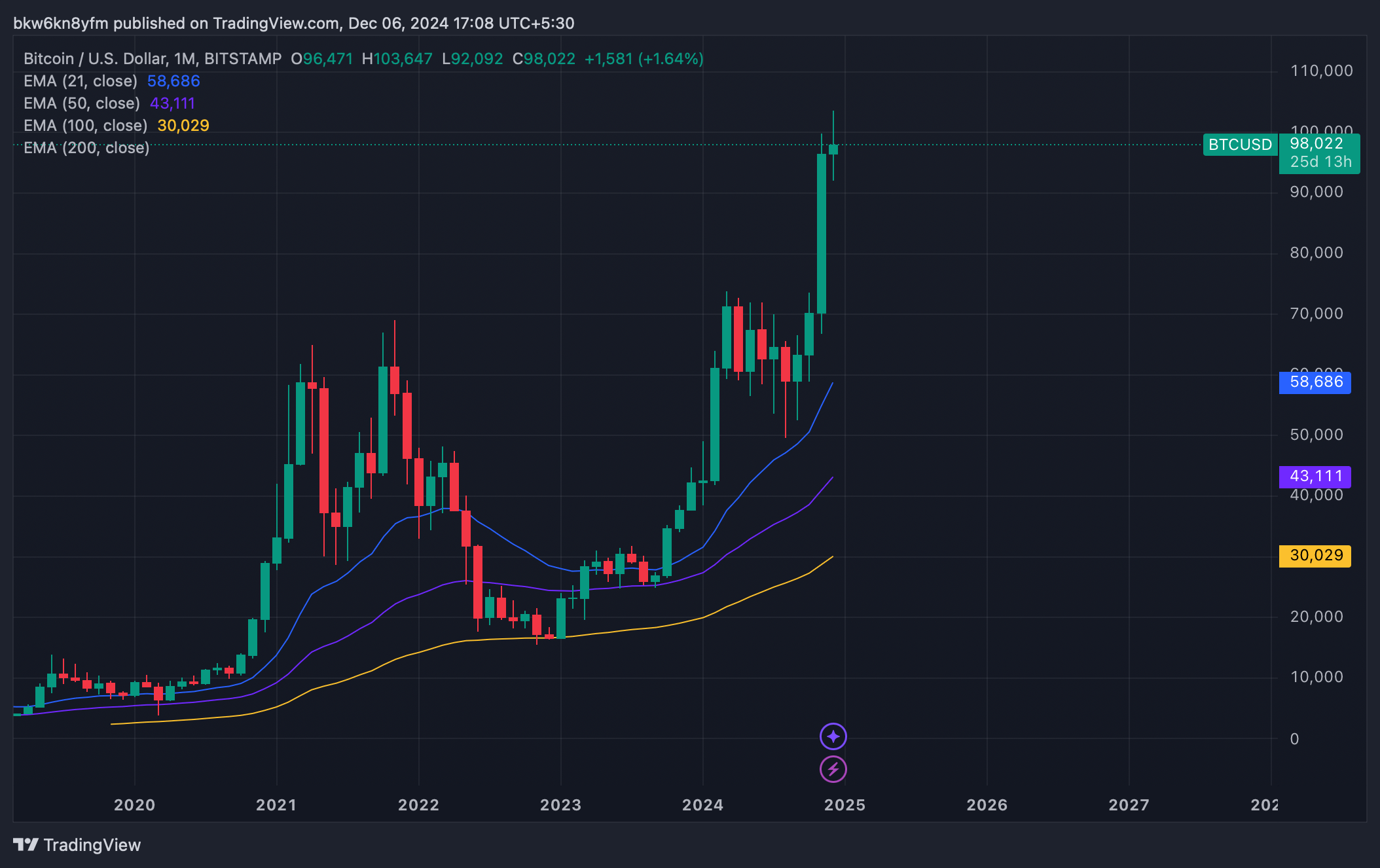The most speculative asset on the planet is up 131% this year (YTD), with most of the gains coming in the last month (38%) after the pro-crypto Republican Party had a clean sweep in the US elections.