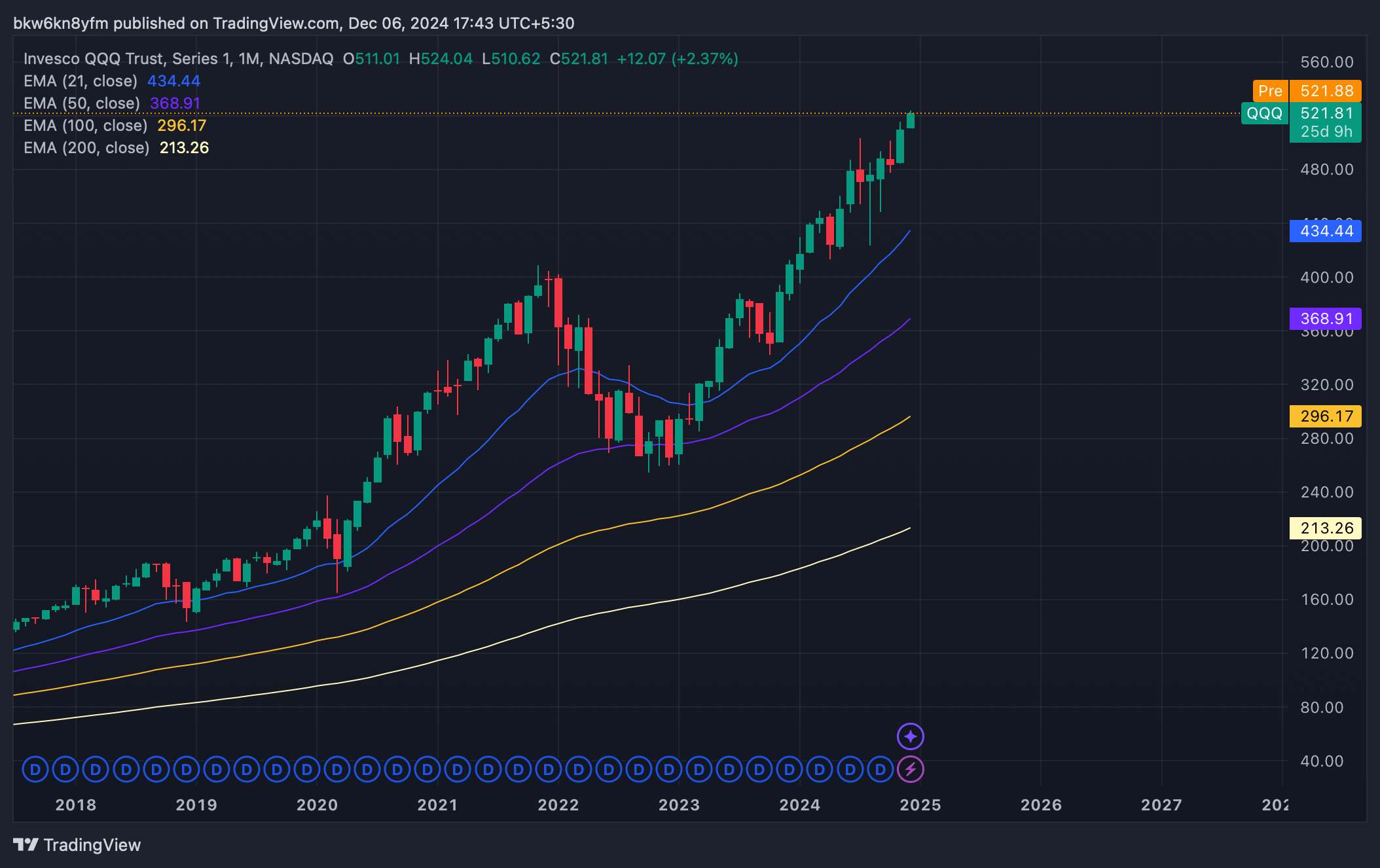 Moreover, despite higher rates in the last 18 months, the tech-heavy NDX/QQQ has now doubled (2X!!) from its lows in December 2022, riding on the AI wave.