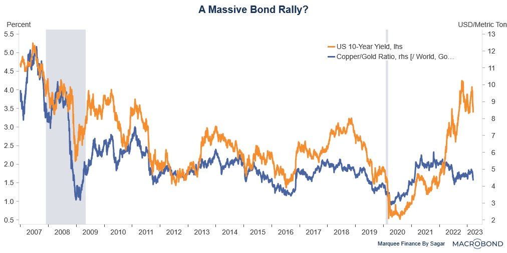 I shared the Copper/Gold ratio with him and discussed how Gold had performed well in the recessionary periods.