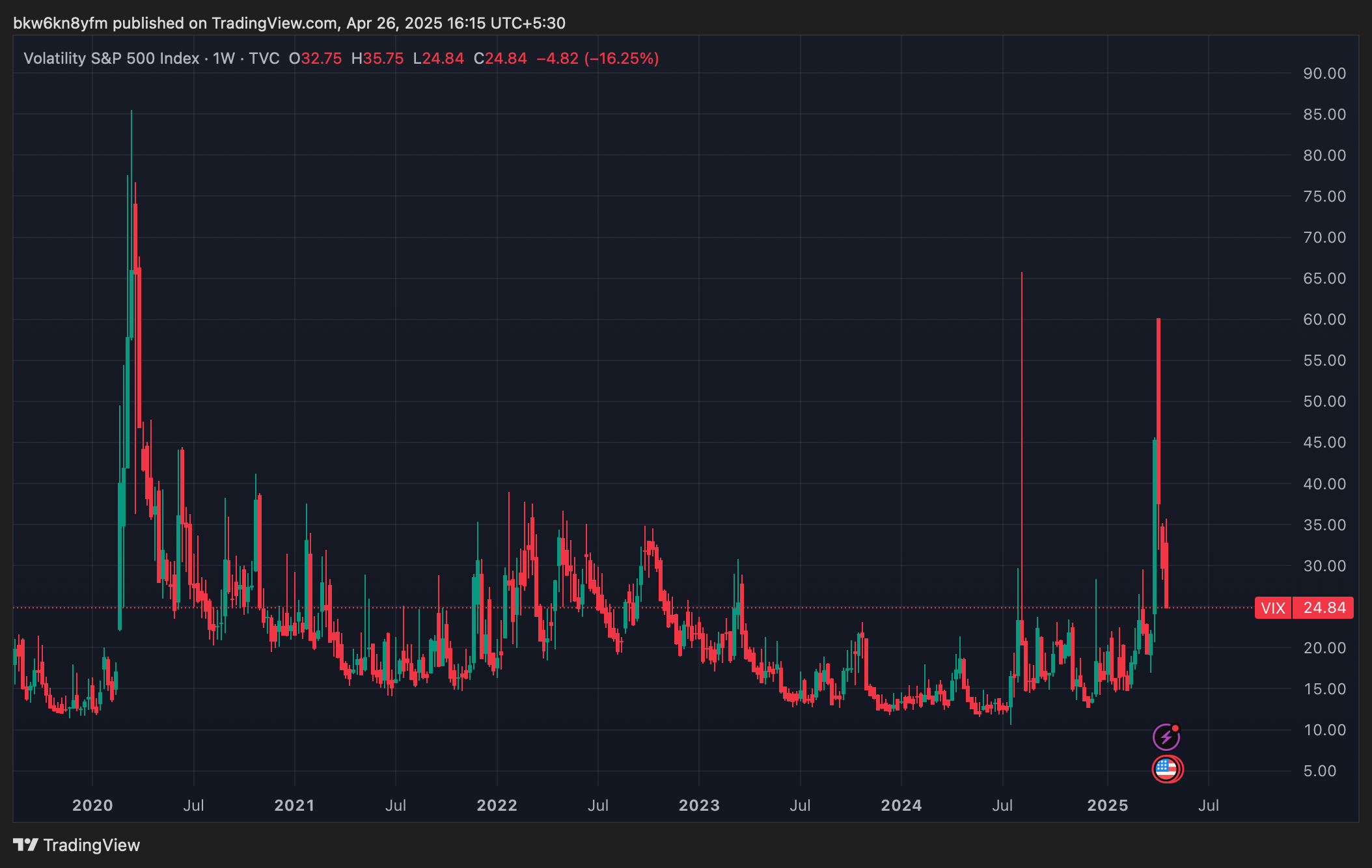 Nonetheless, bulls have something to cheer about: the Volatility Index (VIX) has plunged from 50+ levels to below 25.