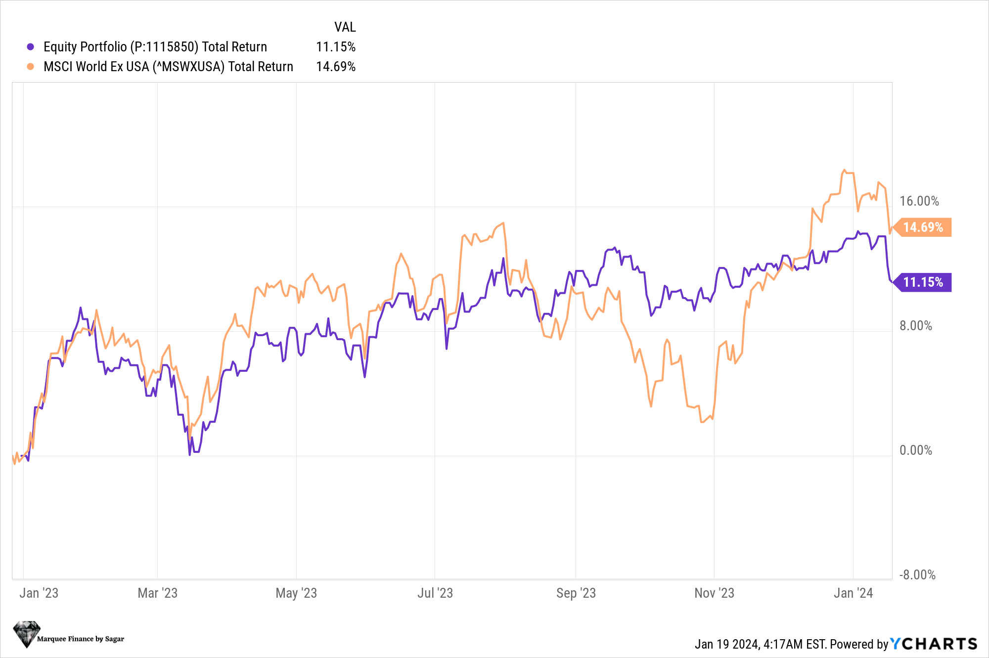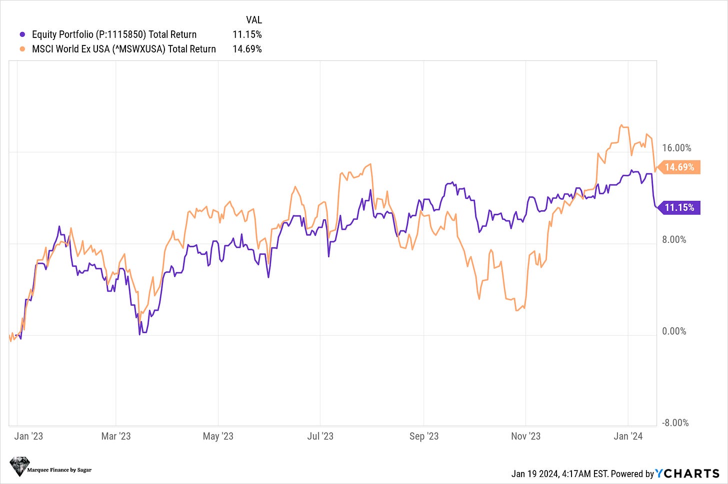 While our overweight position on a select developed equity market has given us a stupendous return, our underweight position on a select market has led us to underperform.