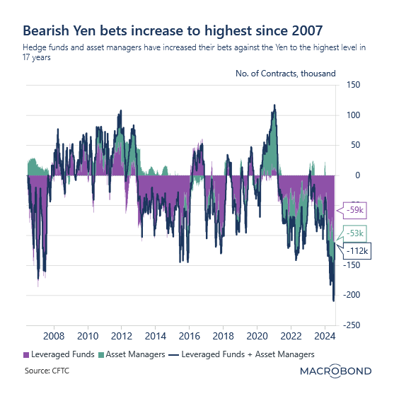 We highlighted this risk in one of our newsletters last month, where we discussed the largest bearish positioning in JPY since 2007.