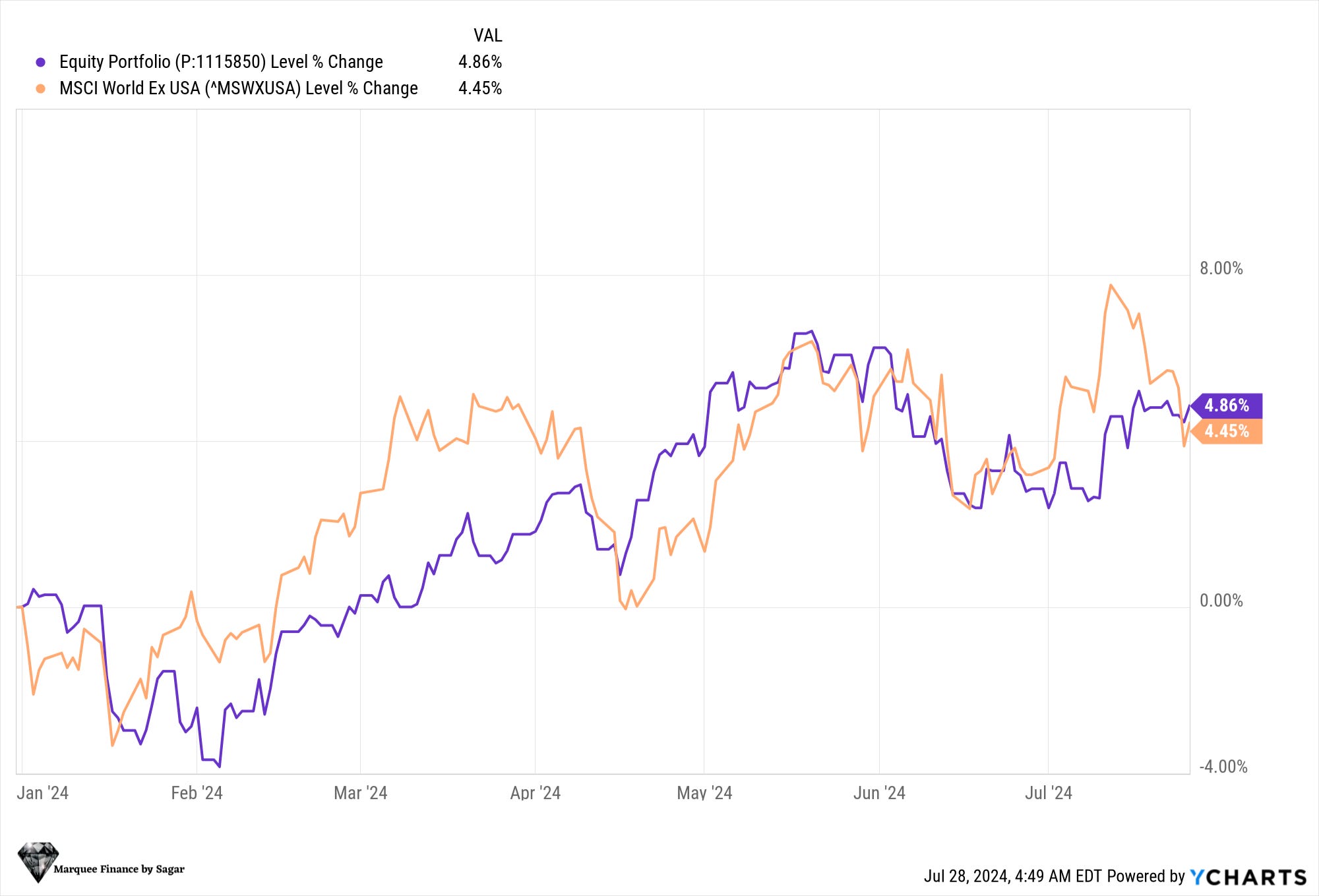 Equity performance has been in line with the benchmark performance despite our underweight stance and high cash position.