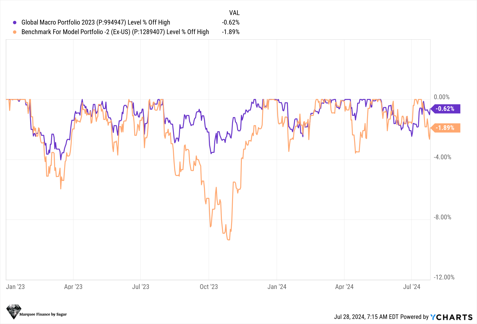 In fact, as you can observe, our PF has never witnessed more than a 4% drawdown, even during the worst-case scenarios (SVB, last year's equity correction).