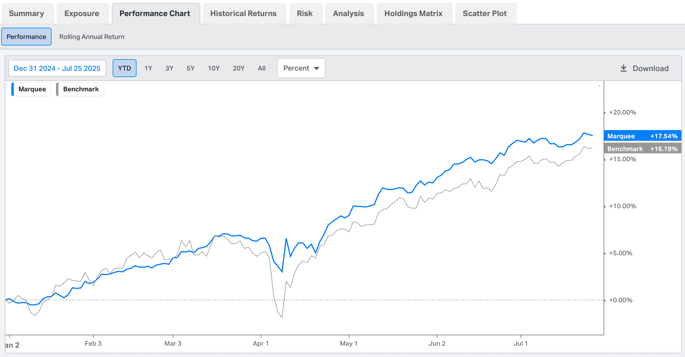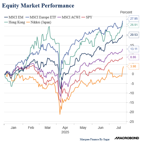 When we examine the overall performance, we are unsurprised by the YTD returns of equity markets globally, as we were among the first to question the “American Exceptionalism” narrative that was prevalent before Trump took office in January.