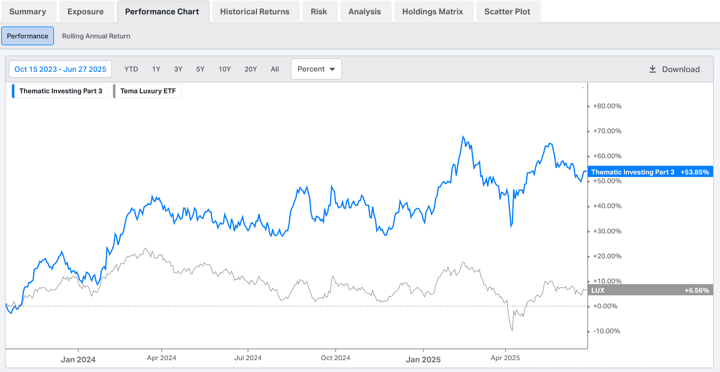 The Thematic Investing series focused on the luxury segment, and despite the slowdown in the sector, our stocks have massively outperformed.
