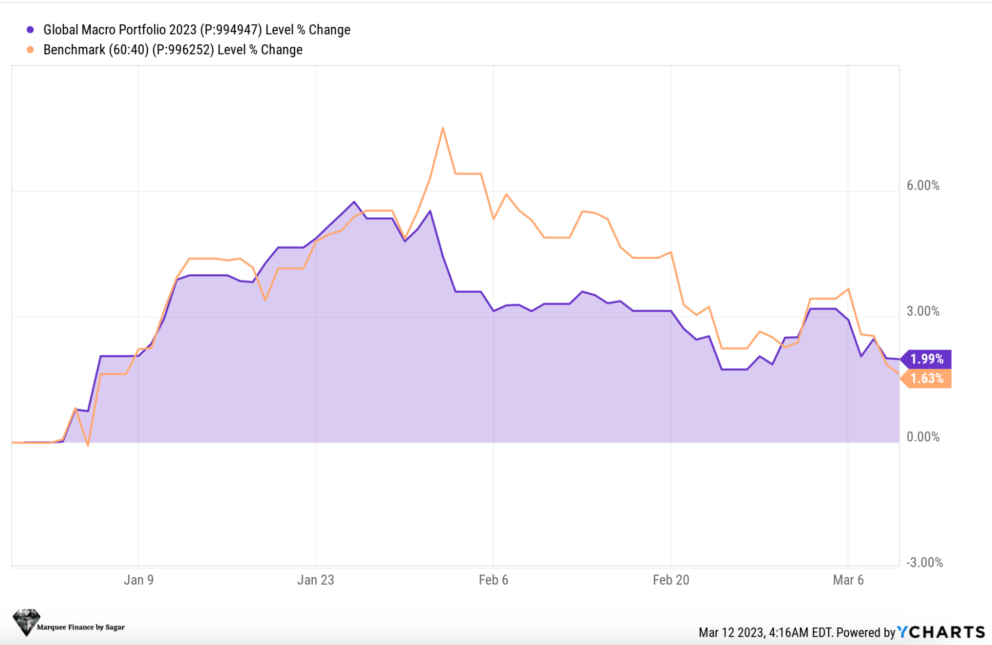 Since we have been “massively” underweight US Stocks, overweight EM, long Gold and short the HY Credit, we have again started to outperform the benchmark.