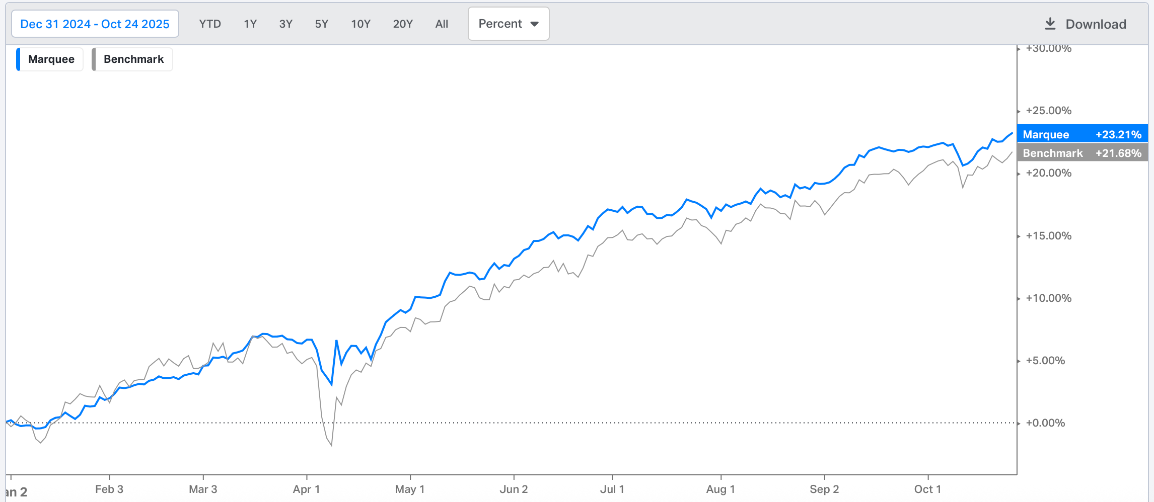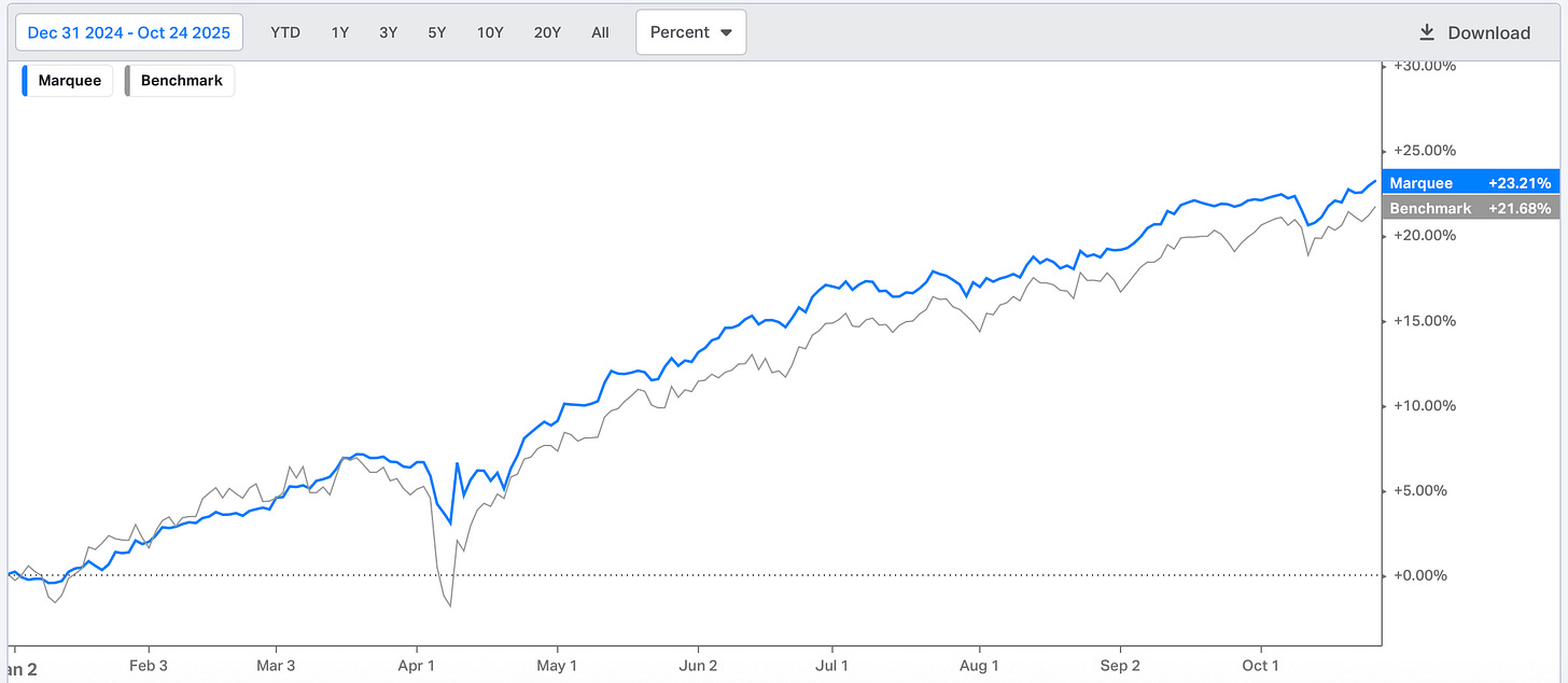 Our PF hit ATHs yesterday, with a YTD return of 23.21%, beating the benchmark by over 150 bps.