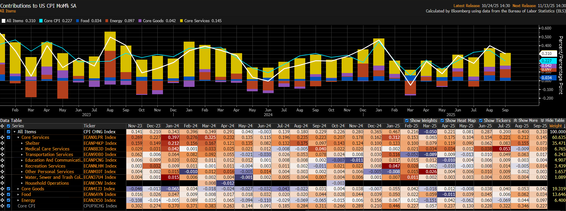 On the contrary, the overall trend shows that Core Goods have been moving higher over the past few months due to tariffs.
