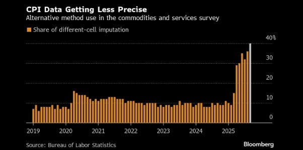 The one chart you don’t want to miss is the share of different cell imputation, or the chart that shows the CPI is becoming less precise with each passing day.